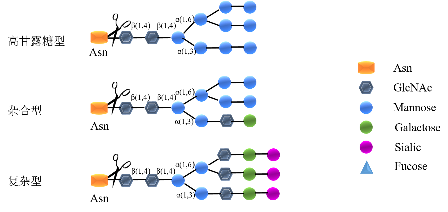 圖1. PNGase F可以從糖蛋白或糖肽上切割釋放幾乎所有類(lèi)型的N-連糖鏈