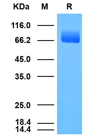 理論分子量為70.2kDa,由于糖基化,SDS-PAGE還原電泳分子量大小為110kDa和115kDa。